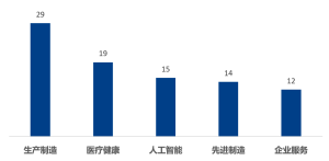 ? 行業集中度高,前5大行業占總量的比值達89%。其中生產制造29家,醫療健康19家,人功能15家,先進制造14家,企業服務12家。