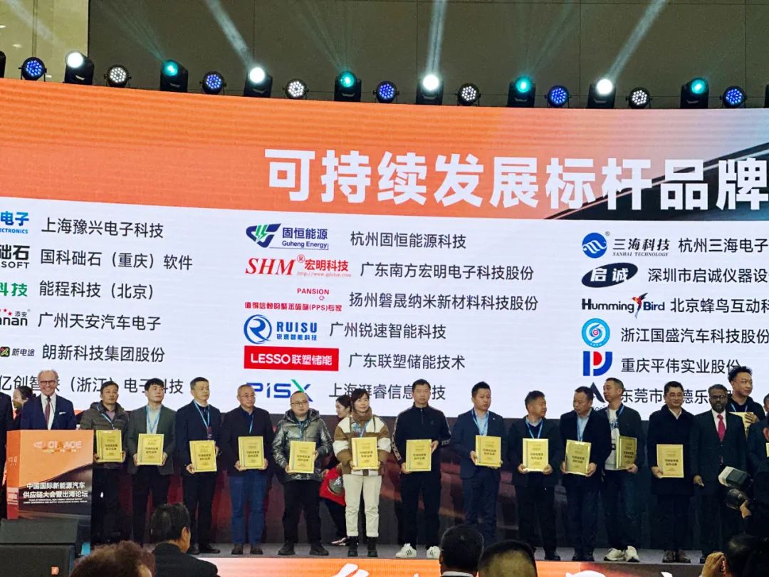 作為新能源汽車供應鏈的優(yōu)質企業(yè),大會主辦方為固恒能源頒發(fā)了《可持續(xù)發(fā)展標桿品牌》的獎牌