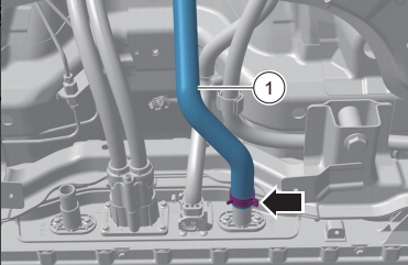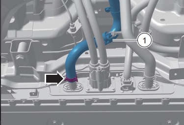 ? ? ? ?松開電池進水管固定卡箍,脫開電池進水管1動力電池系統(tǒng)總成的連接
