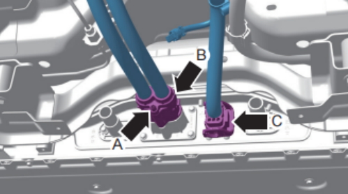 ? ? ? ?③斷開電池高壓線束連接插頭(箭頭B)